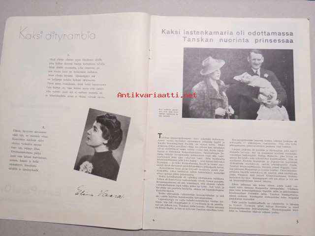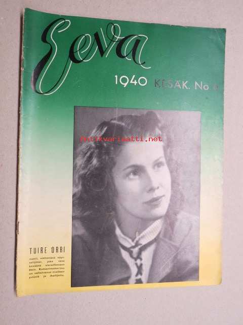 Eeva 1940 nr 6 kansikuva Tuire Orri - Nuori, viehättävä näytteljätär, Kaksi Dityrambia, Kaksi lastenkamaria oli odottamassa Tanskan nuorinta prinessaa, ym.