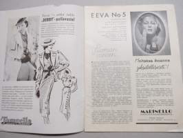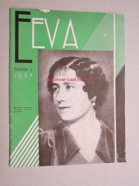 Eeva 1937 nr 5 kansikuva Englannin kuningatar Elisabeth, Ruhtnaalliset 300 markan kuukausitulot, Voiko Säveliä nähdä?, Suomalaisen laulun eksoottinen ilmestys, ym.