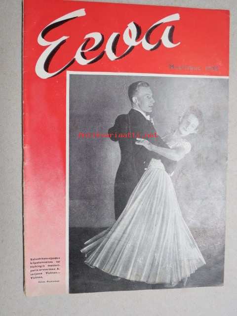 Eeva 1948 nr 3 kansikuva Salonkitanssijoiden kilpatansseissa sai Helsingin mestariparn arvonimen A-sarjassa Vickten-Vickten, Taiteilijoita Auran rannoilla, ym.