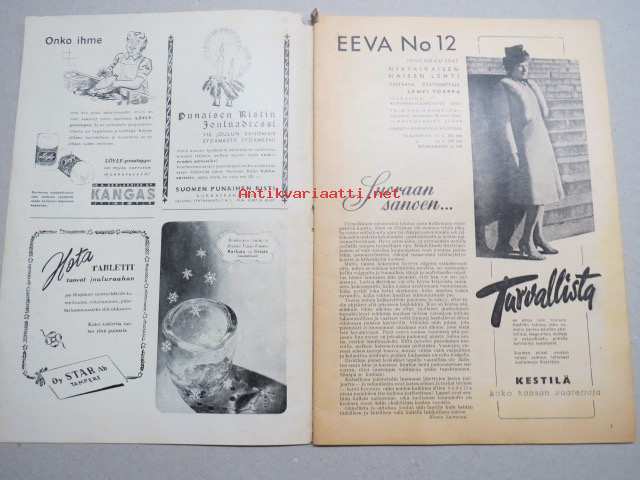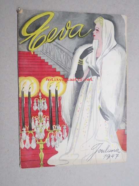Eeva 1947 nr 12 Avioliiton kompastuskivet, Mustien joulua suomalaisessa talossa Haitissa, Suuri iltajuhla punaisen ristin merkeissä, Nainen pukeutuu miestä varten ym