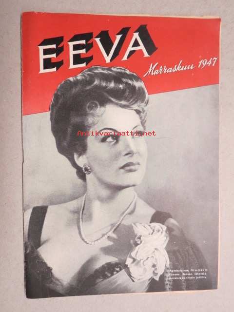 Eeva 1947 nr 11 kansikuva Ranskalainen filmitähti Yvonne Sanson, Mustan naisen elämää kultarannikolla, Arkkitehti Kyllikki Halme - Oman aikamme romantiikkaa, ym.