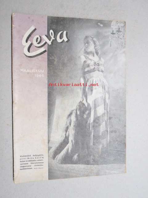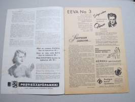 Eeva 1946 nr 3 kansikuva neiti Brita Levón, Mitä on inspiratio?, Miss Hu Tsi-Pang tutustuu Suomeen, Miss Jäderholm-Snellman Lontoon näkradiossa, Vihittyjä, ym.
