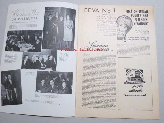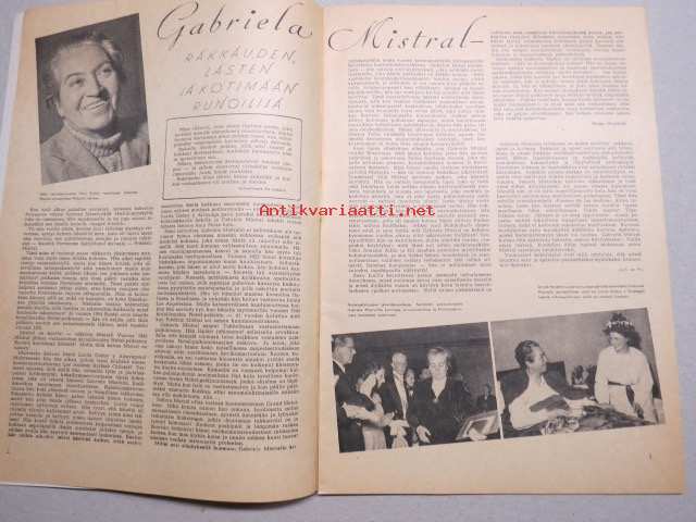 Eeva 1946 nr 1 kansikuva Kevään nainen, Gabriela Mistral, rakkauden, lasten ja kotimaan runolija, Itkevät ruusut, Iltajuhlissa, Mr Järvinen tuli New Yorkista, ym.