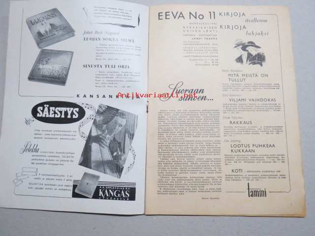 Eeva 1946 nr 11 kansikuva Oopperalaulajatar Doris hovimaa, Tanssijattaren ja runoilijan avioliitto, Arkkitehti Kyllikki Halme - Vain 32m, Kunka se lkoi..., ym.
