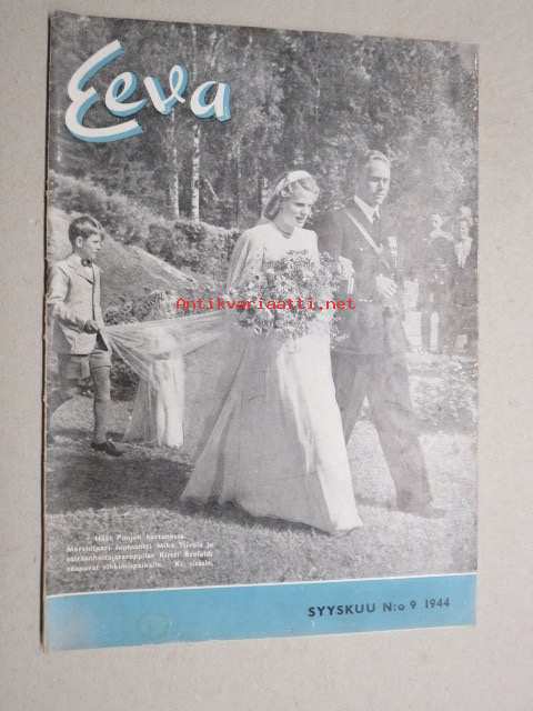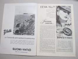 Eeva 1944 nr 9 kansikuva Häät Punjon kartanossa, Naisen aatokset..., Paljon säästin, Jätkänä jätkien parissa, Kuunteletko muutakn kuin uutisia?, Tapaaminen, ym.