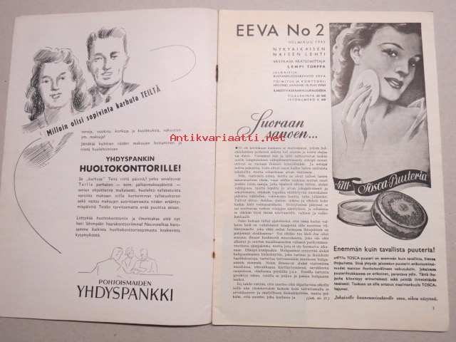 Eeva 1943 nr 2 Kuka on kirjallisuuden viehättävin naishahmo?, Suurkaupungin hienoston maalari, Unkarilaisessa kylässä, Gurli Sevon-Rosenbröijer erehdys, ym.