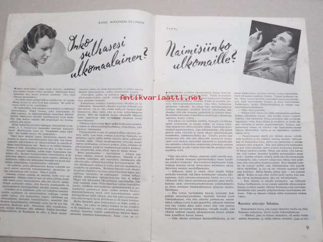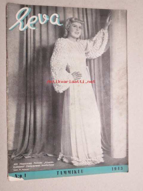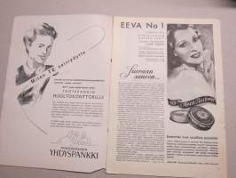 Eeva 1943 nr 1 kansikuva Aili Montonen Firinän "Kissan kullassa", Rositan luona teellä, Yksinäinen, Millainen on nuori suomalainen isä?, Onko sulhasesi ulkomaalainen