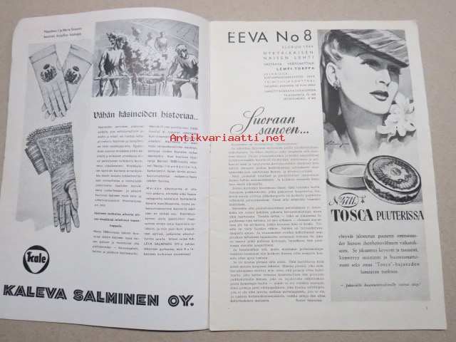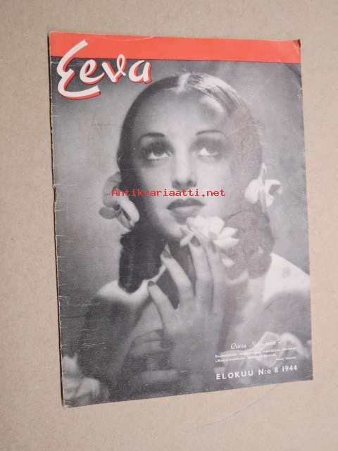 Eeva 1944 nr 8 kansikuva Lucia Nitovitova, Waac-sotilaana Etelämeren sotanäyttämöllä, Tanssijattaren romanttiset vaheet, Itkien iloitsee Unkarilainen, ym.