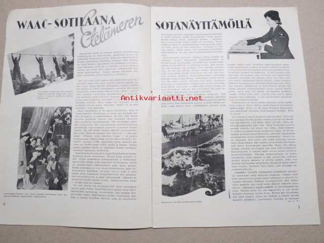 | Saatavilla | 1 kpl | | Julkaisuvuosi | 1944 | | Sivuja | 32 | | Kunto | K2 | | Sidonta/painoasu | Lehti | | Kielet | Suomi |