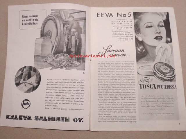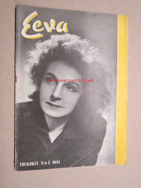 Eeva 1944 nr 5 kansikuva Ella Eronen, Maaherran-koti, Mitkä piirteet meissä naisissa miestä ärsyttävät?, Goethen poika, Tositarkoituksella, Muotia kotoa ja ulkoa, ym