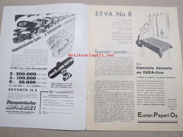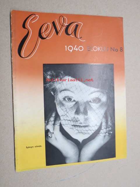 Eeva 1940 nr 8 kansikuva Syksyn silmät, Kolme runolijaa lähti sotaan, Vieraan hätä, Pienen Katriinan ihmeelliset vaiheet, Kuulen Pariisin äänen, ym.