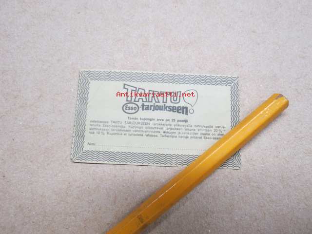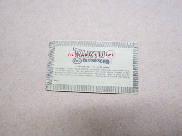 Tartu Esso-tarjoukseen / Grip Esso-Chansen - tämän kupongin arvo on 25 penniä -Esso-huoltoasemien tarjouskampanjan kuponki