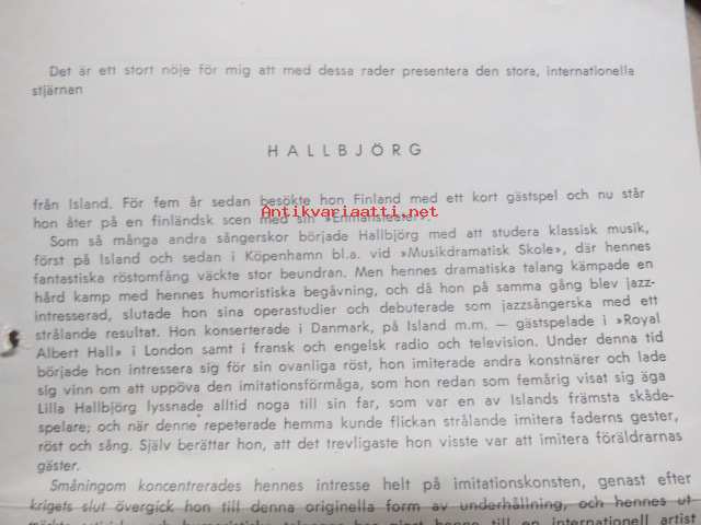 Hallbjörg -nimikirjoitus / signature - ohjelmatoimisto Siimes taiteilijaesittelyn kannessa