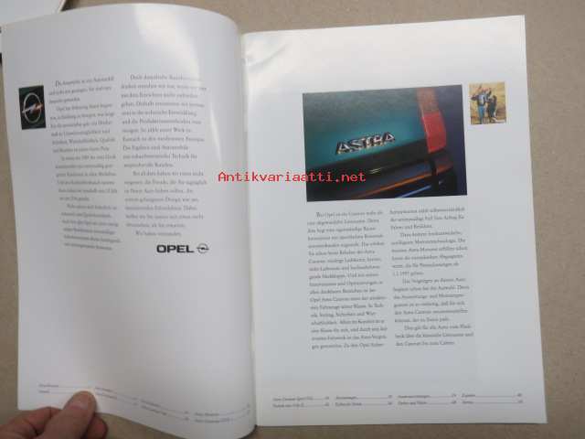 Opel Astra Caravan 1996 -myyntiesite / sales brochure