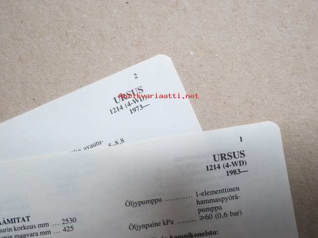 Ursus 1214 (4-WD) 1983- -mitat, painot, moottorin tiedot, säätöarvot yms. - Tammi autotekniikan käsikirja-sarjaa