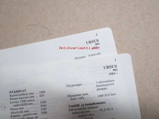 Ursus 902 1983- -mitat, painot, moottorin tiedot, säätöarvot yms. - Tammi autotekniikan käsikirja-sarjaa