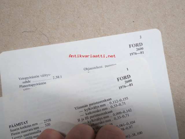 Ford 2600 1976-81 -mitat, painot, moottorin tiedot, säätöarvot yms. - Tammi autotekniikan käsikirja-sarjaa