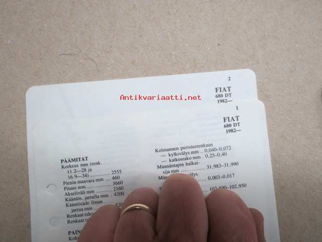 Fiat 680 DT 1982- -mitat, painot, moottorin tiedot, säätöarvot yms. - Tammi autotekniikan käsikirja-sarjaa