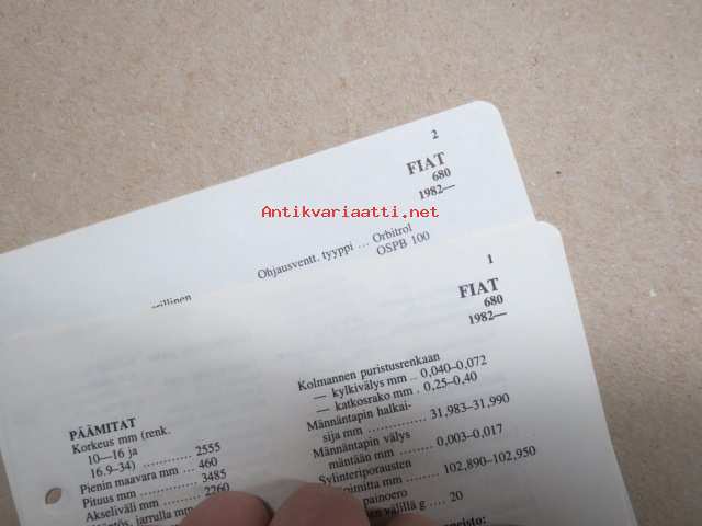 Fiat 680 1982- -mitat, painot, moottorin tiedot, säätöarvot yms. - Tammi autotekniikan käsikirja-sarjaa
