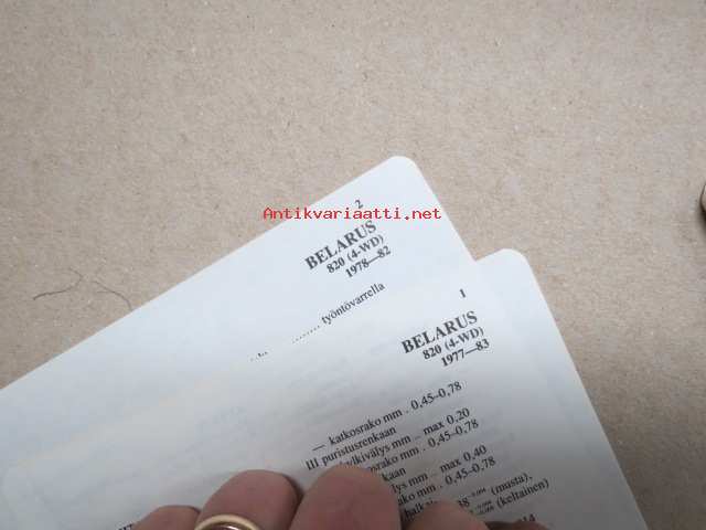 Belarus 820 (4-WD) 1977-83 -mitat, painot, moottorin tiedot, säätöarvot yms. - Tammi autotekniikan käsikirja-sarjaa