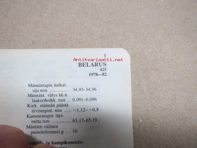 Belarus 425 1978-82- -mitat, painot, moottorin tiedot, säätöarvot yms. - Tammi autotekniikan käsikirja-sarjaa