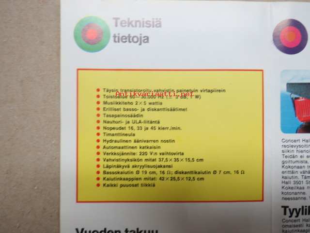 Concert Hall 3501 stereolaitteisto -myyntiesite / sales brochure