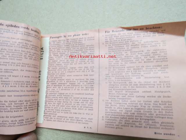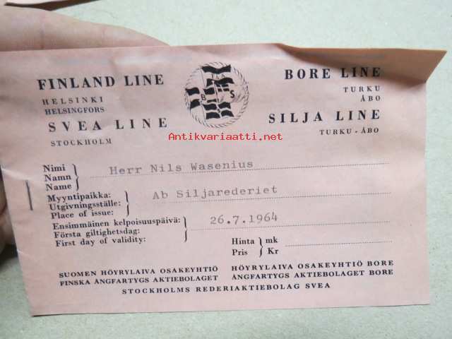Finland Line - Svea Line - Bore Line - Silja Line -matkalippukanta 27.4.1964