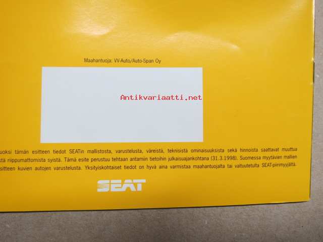 Seat Ibiza 1998 -myyntiesite / sales brochure