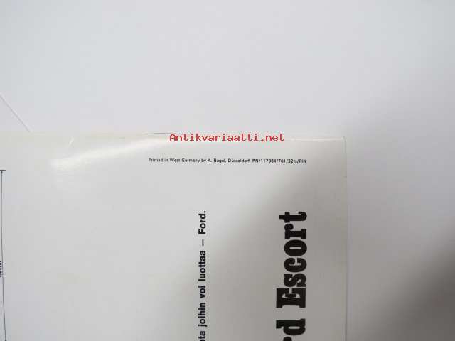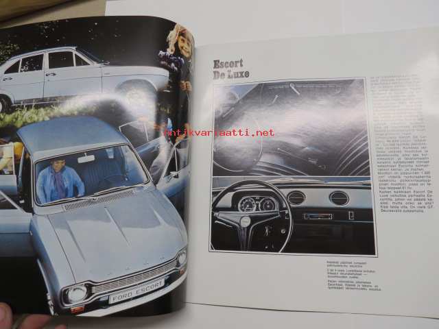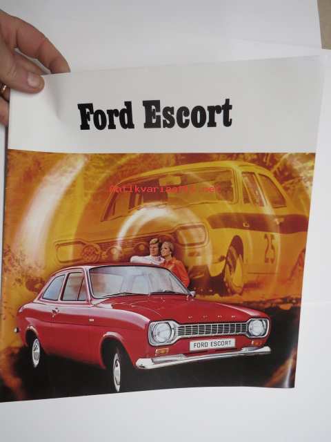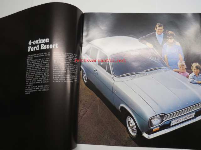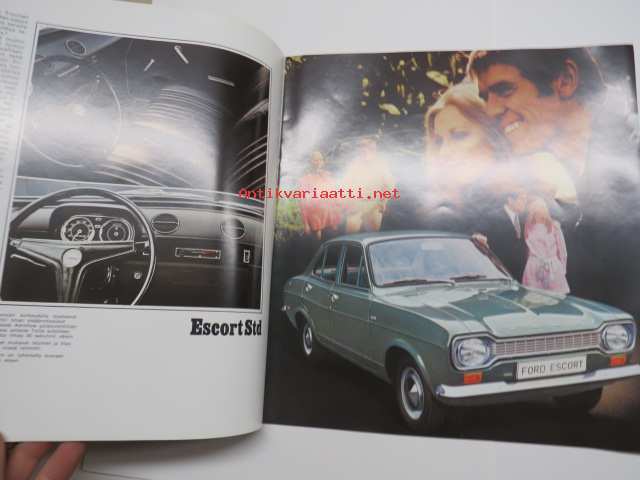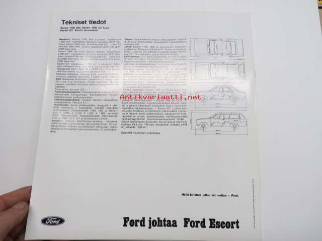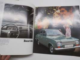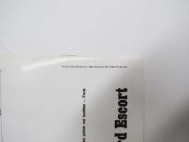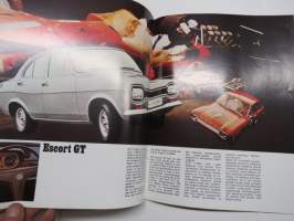 Ford Escort 1100 Std, Escort 1300 De Luxe, Escort GT, Escort farmariauto 19?? -myyntiesite / sales brochure