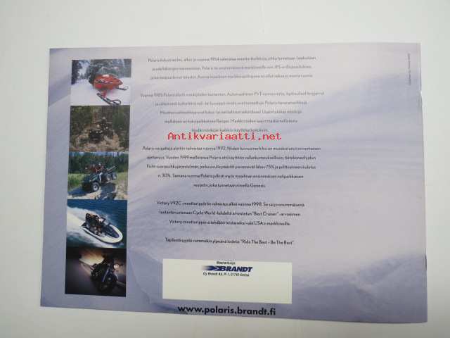 Polaris 2001 moottorikelkat -myyntiesite, sales brochure