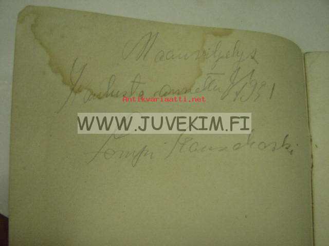 | Saatavilla | 1 kpl | | Julkaisuvuosi | 1910 | | Sivuja | 23 | | Painos | 2. uusilla kuvilla varustettu painos | | Kunto | K2 | | Kosteusvaurio | | Sidonta/painoasu | Nidottu (pehmeäk.) | | Kielet | Suomi |