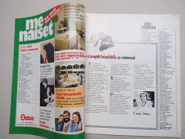 Me Naiset 1979 nr 2, 11.1.1979, Anneli Sari, Heikki Korpi, Tapio Räisänen, Ursula Andress, Naiset Kanarialla, Titta Karakorpi & Jaakko Pakkasvirta, ym.