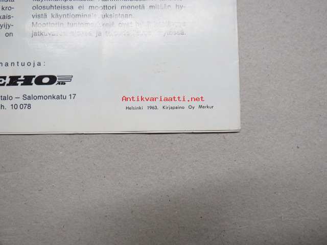 | Saatavilla | 1 kpl | | Julkaisuvuosi | 1963 | | Kunto | K2 | | Sidonta/painoasu | Pienpainate | | Kielet | Suomi |