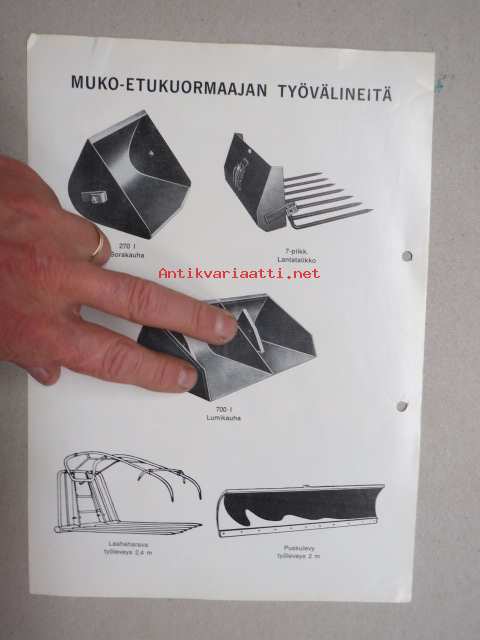 Muko etukuormaaja / traktorikuormaaja + työvälineitä -myyntiesite