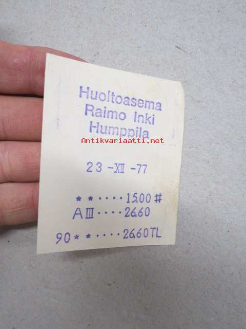 Huoltoasema Raimo Inki, Humppila 23.12.1977 -kassakuitti