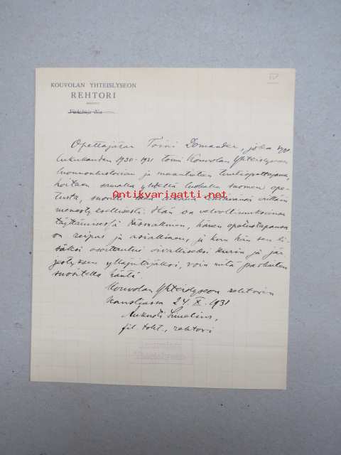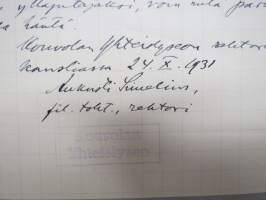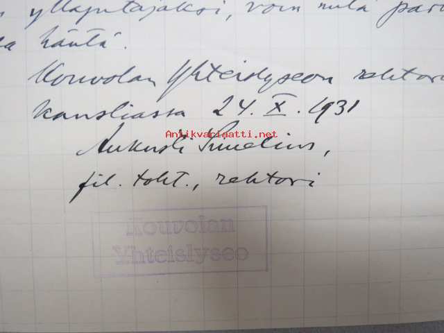 Kouvolan Yhteislyseo, 1931 -asiakirja, allekirjoitus Aukusti Simelius