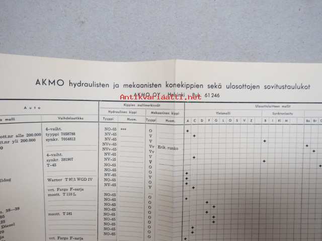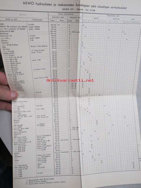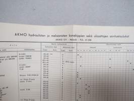 AKMO hydraulisten ja mekaanisten konekippien sekä ulosottojen sovitustaulukot