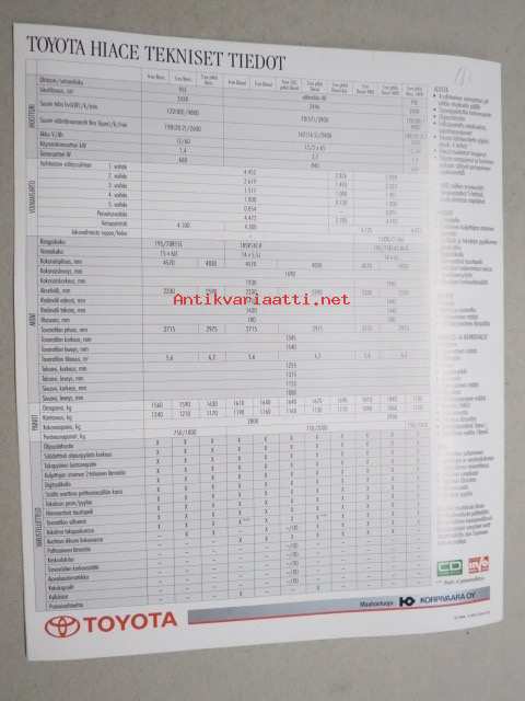 Toyota Hiace -myyntiesite / sales brochure