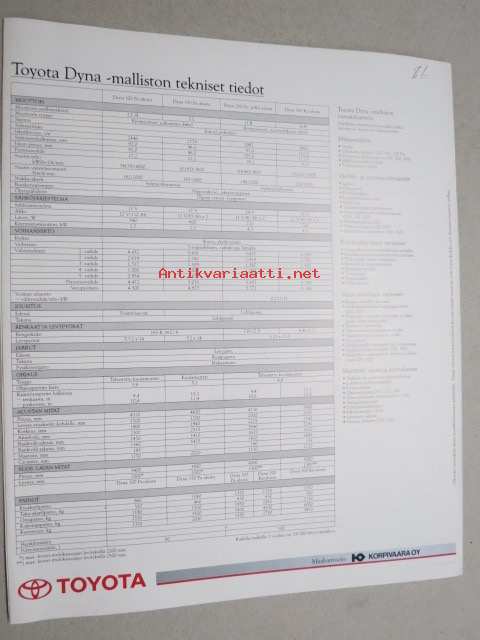 Toyota Dyna -myyntiesite / sales brochure