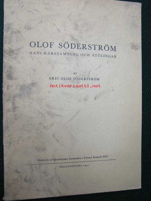 Söderström Eric Olof, ur Genealogiska Samfundets i Finland Årskrift XXV, 1941