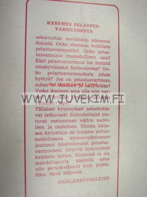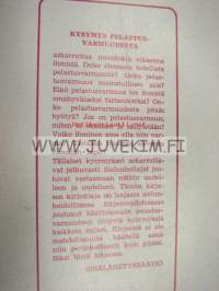 | Saatavilla | 1 kpl | | Julkaisuvuosi | 1973 | | Sivuja | 72 | | Painos | 5. | | Kunto | K3 | | Sidonta/painoasu | Nidottu (pehmeäk.) | | ISBN | 951-9038-11-6 | | Kielet | Suomi |