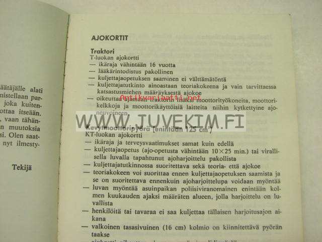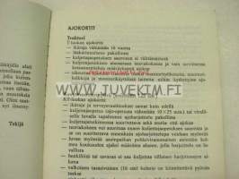 | Saatavilla | 1 kpl | | Julkaisuvuosi | 1977 | | Sivuja | 112 | | Painos | ? | | Kunto | K2 | | Sidonta/painoasu | Nidottu (pehmeäk.) | | Kielet | Suomi |