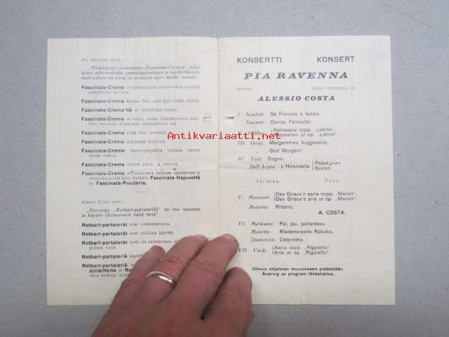 Pia Ravenna (avustaa Alessio Costa) - konserttiohjelma - konsert program, huomaa runsaat Fascinata-Creme kauneusvoide & Rotbart-partaterät mainosluseet