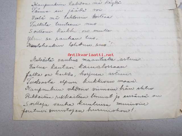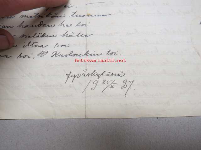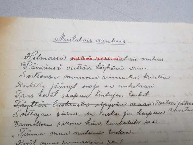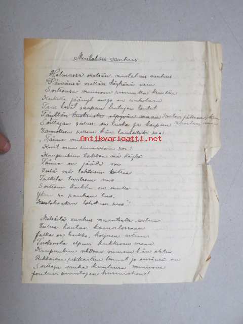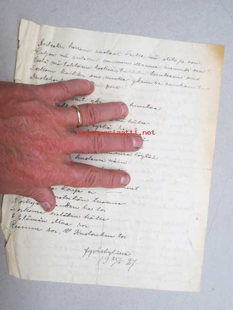 Mustalaisvanhus -käsinkirjoitetut laulun sanat "Jyväskylässä 25.2.1927"