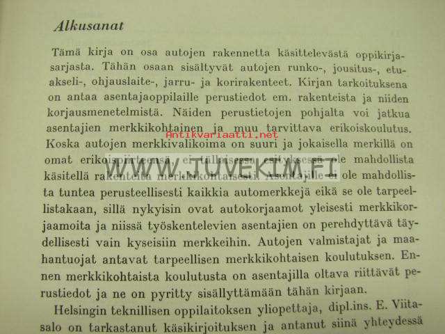 Väisänen Reijo, Otava, 196815 x 21 cm kirja. Ammattienedistämislaitoksen ammattikirja nr 50. Perusteellinen esitys auton rakenteesta.