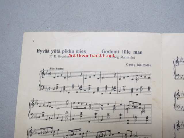 Hyvää yötä pikku mies - Godnatt lille man - Georg Malmstén -nuotit