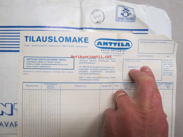Anttila postimyynti -tarjouslehtien / luettelon postituskuori, sisällä tilauslomake