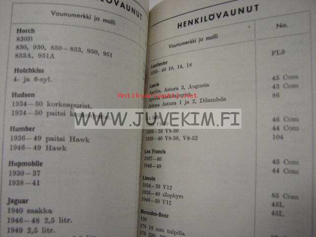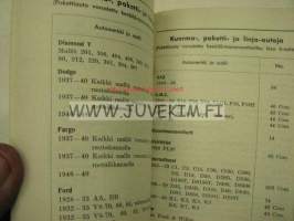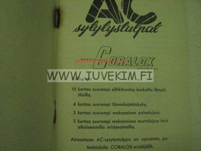 | Saatavilla | 1 kpl | | Julkaisuvuosi | 195? | | Sivuja | 58 | | Kunto | K3 | | Niitit ruosteessa | | Sidonta/painoasu | Nidottu (pehmeäk.) | | Kielet | Suomi |