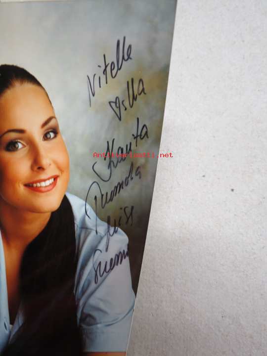 Nitelle rakkaudella - Karita Tuomola - Miss Suomi -nimikirjoitus valokuvaan kirjoitettuna