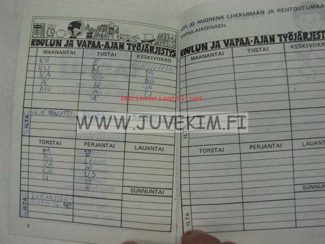 | Saatavilla | 1 kpl | | Julkaisuvuosi | 19 | | Sivuja | 128 | | Kunto | K2 | | Sidonta/painoasu | Nidottu (pehmeäk.) | | ISBN | 951-716-014-3 | | Kielet | Suomi |